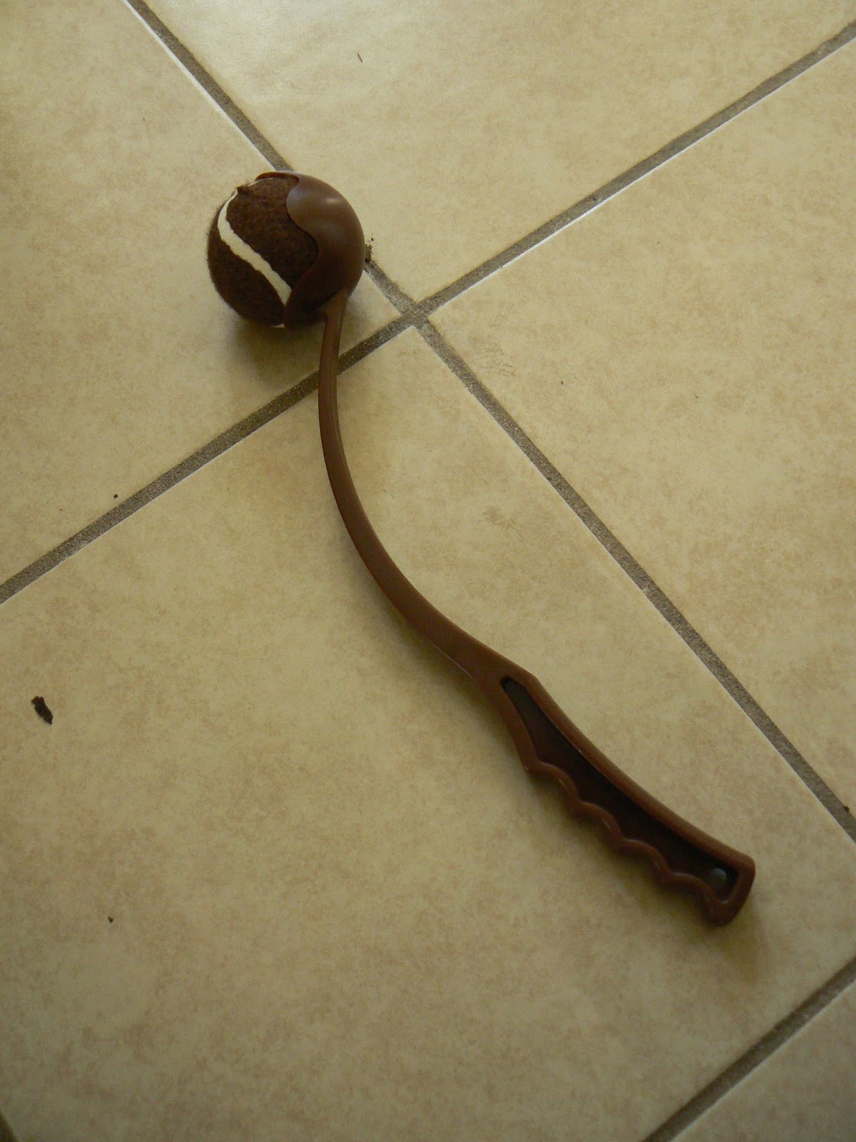 Hey pups! In Friday's post I said that I would post again about the ball thrower that Mom purchased to help wear the bundle of energy that is me out quicker. Well let's just say that it is working... Also Mom says that it makes throwing much easier- the ball sails without putting much effort in (lazy hooman!).